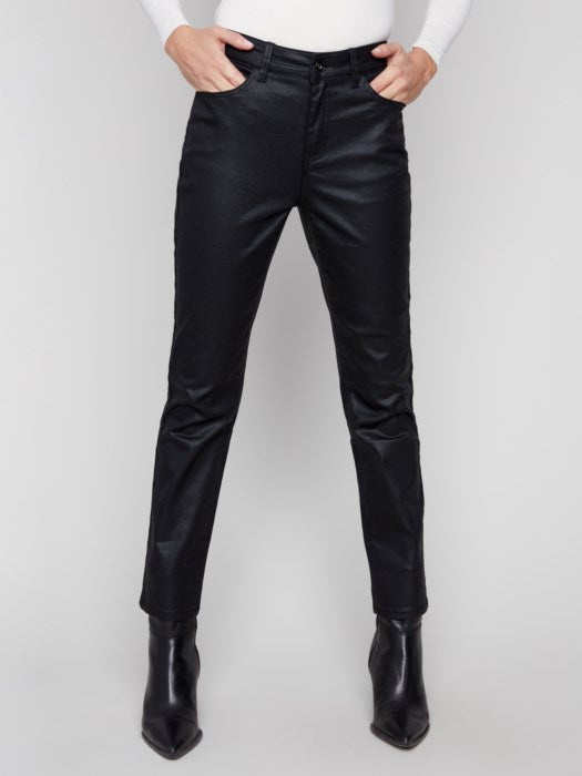 CHARLIE B SLIM LEG WAX TWILL PANTS - BLACK